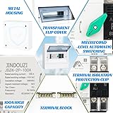 DUAL POWER AUTOMATIC TRANSFER SWITCH: This 100A automatic transfer switch is designed specifically for photovoltaic backup power systems and has millisecond level power conversion function. When the main power supply fails, it can quickly switch to the backup power supply within 0.05 seconds to ensure the continuity, reliability, and safety of the power supply. When the public power supply returns to normal, it will automatically switch from the backup power supply to the public power supply. Simultaneously supporting manual operation, making power switching more flexible and convenient. VISUAL DISTRIBUTION BOX SHELL: This transfer switch comes with a distribution box shell, which is made of high-quality steel material, a visual transparent flip cover, C45 guide rails, and wiring terminals, making it safe and durable. Under the protection of the anti touch shell of the power supply, the ATS conversion switch can be clearly viewed or operated, providing safety assurance for personnel and equipment, making your use safer and more reassuring. 110V OVERVOLTAGE AND UNDERVOLTAGE PROTECTION: The 110V automatic transfer switch is suitable for 50/60Hz dual power grids, with a maximum load current of 100A. 110V/50Hz undervoltage value: 85V, recovery value: 95V; overvoltage value: 145V, recovery value: 130V (± 5V). The automatic transfer switch has dual protection functions for overvoltage and undervoltage, effectively reducing the risk of electrical faults, thereby improving the stability, safety, and equipment life of the electrical system. WIDELY APPLICABLE: This dual power transfer switch ensures stable power supply and is suitable for power systems and equipment that require stable power input and dual power supply protection; ATS is an excellent equipment used in homes, hospitals, low-temperature cold storage, data centers, and emergency systems. It can quickly switch to the backup power supply within 0.05ms in the event of a main power outage to ensure safe and reliable power supply. QUALITY ASSURANCE: The solar transfer switch is made of high-quality materials with guaranteed quality. The product offers a 30 day no reason return and a 3-year warranty to ensure you have a worry free shopping experience. If you have any questions about installation or use, or encounter any problems during use, our customer service team is always available to assist.