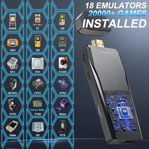 - 👶Built-in 20000+ Classic Games: The wireless retro gaming console stick is equipped with over 20000 classic games, from arcade games to home consoles, capturing memories spanning multiple eras. 18 emulators are pre installed and equipped with 64GB TF card. No additional download, installation and Internet are required, so you can instantly relive the fun of childhood and make happiness within your reach.