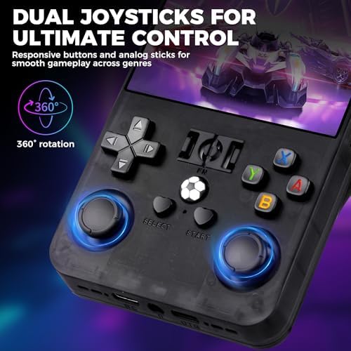 - 【portable game console】The gaming handheld body is only 3.3*6IN, and R36MAX can be easily put into your pocket or your backpack. The handheld retro game console reduces the size and weight while ensuring high performance, strong battery life, and large screen, and provides you with a comfortable holding experience; the handheld video games are also equipped with high-quality speakers and a 3.5mm headphone jack, giving you an immersive gaming experience without disturbing others.