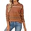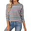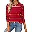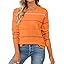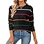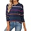 SHEWIN Womens Sweaters Crew Neck Knit Long Sleeve Striped Sweater Fall Outfits for Women 2025