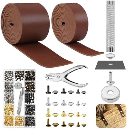 363 Pcs Leather for Crafts Kit 140 Inches Leather Straps Flat with 1 2 Inch Wide 360 Rivets and 1 Double Rivet Tubular Setting Craft Tool for DIY Bags Craft Repairs Decoration