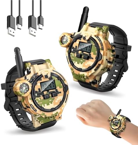 - 【Cool Camo Design】Fuel their imagination with a tactical military-inspired design that makes every adventure feel like a top-secret mission! Ideal for young agents-in-training, this walkie talkie watches enhances role-playing games, boosts confidence in outdoor exploration, and sparks endless creativity. Parents can join the fun too—bond over spy games, treasure hunts, or camping trips while creating unforgettable childhood memories.