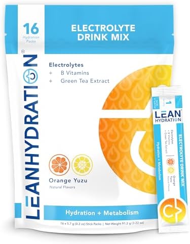LEAN Hydration Daily Electrolyte Packets Drink Mix | Zero Calories, Zero Sugar plus Vitamins, Minerals & More | 16 ct (Orange Yuzu)