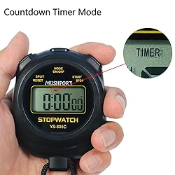 - MUSHPORT coaches stopwatch timer is a good design, it has only stopwatch and countdown mode; it comes with the ON/OFF switch, large display, small and lightweight, handheld great. MUSHPORT stop watch has a replaceable battery, one AAA battery included. The digital stop watch comes with a 47in nylon lanyard (neck strap) which is convenient to carry for coaches and referees. ideal for PE teachers coaches athletes runners adults kids, suits for various sports such as running, swimming and football practice etc. Main Features: 1. 1/100-Second Accuracy 2. stopwatch and countdown mode 3. Turn ON/OFF Function 4. Replaceable Battery Package Include: 1 X MUSHPORT Stopwatch Timer 1 X AAA Battery Included 1 X Black Lanyard 1 X User Manual * Pay Attention * The screen protector is attached to the stopwatch, and you can tear it off as your need. Please do not use the stopwatch in water