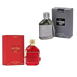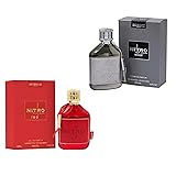 Dual Signature Scents: This bundle features Nitro Elixir with fresh, spicy, woody layers and Nitro Red with fruity, floral, and masculine accords. Two distinct fragrances crafted for men seeking variety and sophistication. Long Lasting Performance: Nitro Elixir, an Extrait de Parfum with 80% concentration, offers 8–12 hours of projection. Nitro Red, an Eau de Parfum, delivers a lively and enduring scent trail for everyday confidence. Versatile for All Occasions: Nitro Red provides fresh energy suitable for daytime wear, while Nitro Elixir adds depth and elegance for evening settings. A practical duo designed to complement both work and leisure. Distinctive Bottle Designs: Nitro Elixir is presented in a leather-wrapped chrome finish bottle, and Nitro Red in a bold red glass bottle. Both are designed with premium aesthetics, making them suitable for gifting. Crafted with Premium Ingredients: Notes include bergamot, apple, sandalwood, amber, and praline, blended with attention to quality. Inspired by French perfumery, this set delivers refined fragrances with long-lasting appeal. Include Pack : 1 Nitro Red and 1 Nitro Elixir