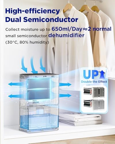 - 【2X Improved Semiconductor Condensers】: 2025 Upgrade Dehumidifier Pro use thermoelectric cooling to effectively remove moisture from the air. Meanwhile, the dehumidifier effectively reduces problems with moisture, and unpleasant odors, lowers the risk of respiratory diseases, asthma, and allergies, and helps improve air quality and create a comfortable and healthy living environment.