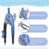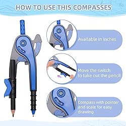 COMPLETE SET: Professional geometry kit includes a precision drawing compass and clear 180-degree protractor for accurate mathematical drawings and measurements PROTRACTOR FEATURES: 6-inch swing arm protractor with clear design and precise angle markings from 0-180 degrees for easy measurement reading COMPASS DESIGN: Smooth-operating drawing compass creates precise circles and arcs, featuring durable construction and stable pivot point VERSATILE APPLICATION: Ideal for geometry class, technical drawings, architectural sketches, and mathematical calculations requiring precise measurements PORTABLE DESIGN: Lightweight and compact tools easily fit in standard school supplies, perfect for students to carry between classes