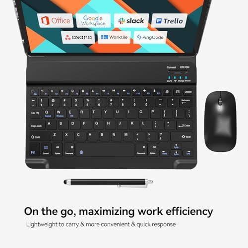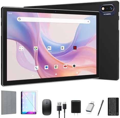 - Versatile FOR WORK AND PLAY — Thoughtfully packed bluetooth keyboard, mouse set, tablet case and stylus pen, screen protector, with this android tablet set you can get everything you need at once. Get a portable work station!