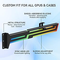 【Anti - Sag Protection & Hardware Longevity】Act as a robust gpu sag support! This gpu support bracket eliminates GPU sag, reducing PCIe slot stress. The heavy - duty, rust - resistant metal frame + shock - absorbing silicone pads protect your GPU’s integrity, extending hardware lifespan—essential for gamers and builders. 【16.8M ARGB Sync & Custom Vibes】Unleash 16.8 million RGB colors with 8+ modes (Breathe, Music Sync). Sync via 5V 3 - pin/9 - pin USB, compatible with AURA/RGB Fusion/Polychrome. Included with a built-in adapter cable to connect another RGB device, enabling synchronized lighting for a more cohesive, immersive rig look, matching any build theme. 【Precision Sliding Adjustment & Universal Fit】With 130mm left/right slide + 30mm height adjustment, this gpu bracket support fits ALL GPUs (up to RTX 4090). The sliding design ensures a perfect, sag - free hold for ATX/ITX cases—no compatibility headaches, ideal as a gpu stand. 【Modular Ecosystem & Sync Capability】Be part of the GSCOLER ECO - SYSTEM! Sync this graphic card support with other cooling/lighting components. Unleash your build’s potential by harmonizing RGB and cooling, creating a next - level, unified aesthetic. 【Durable Black Aesthetic & Easy Installation】A robust GPU stand with a black metal frame—ensures long-term stability, shielding your GPU from sag and vibrations. Ideal for gamers seeking a stealthy, durable option for dark-themed rigs, it complements a durable black aesthetic. Easy installation (adjust, mount, sync) secures your GPU and elevates style.