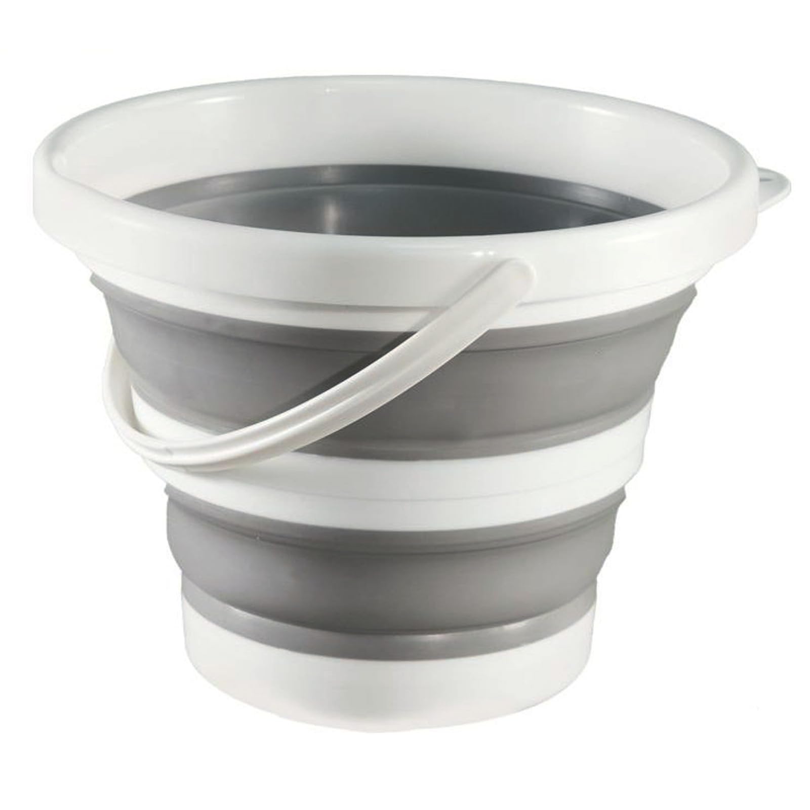 - Triple Reinforced Plastic Support: Rigid plastic parts at top, middle, and bottom of the 1.3 Gallon collapsible bucket withstand 5L water without buckling. Ideal to be used as a car wash bucket requiring stability during scrubbing, a collapsible mop bucket dragged across floors, a collapsible sand bucket for travel, a laundry bucket for laundry room, or a cleaning bucket for household use. Outperforms flimsy small buckets without plastic band design for professional cleaning supplies, camping essentials, beach supplies and RV supplies.