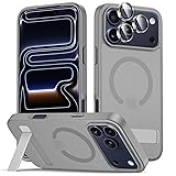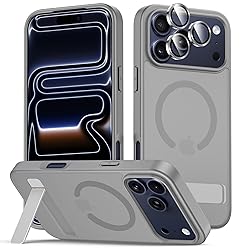 Perfect Fit: Designed for iPhone 17 Pro 6.3-inch. It does NOT fit other models. Please check your phone model before buying Functional and Invisible Kickstand: The kickstand of the 17 Pro case is foldable, sturdy, and built to last. This built-in handy stand is made from light and solid aerospace-grade metal, offering a sturdy and flexible portrait, landscape, or conference call mode experience Compatible with MagSafe Accessories: This phone case for Apple iPhone 17 Pro has a strong magnetic back and can be used with MagSafe-compatible magnetic car holders, wireless chargers, and other accessories, making your life easier Military Grade Protection: Built-in camera lens protector film provides enhanced protection for your camera without affecting photo quality. The 4 corners protect your phone against accidental falls and bumps. Featuring 2.0mm raised edges around the screen and camera, this case shields your 17 Pro from scratches and direct friction even on face-down surfaces Slim Design & Comfortable Grip: This thin case for iphone 17Pro brings you greater portability and a firmer grip, semi-translucent matte easy to stay clean, anti-fingerprint and brings the exceptional silky touch feeling. Precise hole cutting and sensitive buttons ensure easier access to every button and function