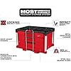 Multi Depth 3 Drawer Tool Box has a 50lbs weight capacity and a locking security bar that allows you to padlock the drawers closed keeping them securely shut during transport. As part of Modular Storage, the Tool Box allows you to customize your storage system for easy transportation and organization of tools and accessories. This portable tool box with drawers is constructed with impact-resistant polymers, all-metal ball-bearing slides, and metal-reinforced corners for ultimate jobsite durability