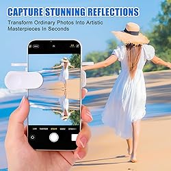 【Creative Photography Tool】This smartphone camera mirror reflection clip kit adopts a high-transparency lens, ensuring clear reflection. With this reflection clip mirror, you can create amazing and beautiful photos easily 【Instant Mirror Effects】Our Mirror Reflection Clip creates layered compositions by merging reflections with subjects—turning puddles, glass, or natural surfaces into dreamy canvases. Ideal for landscape, portrait, and macro reflection photography 【Supports Multiple Shooting Angles】Designed for flexible shooting, this phone camera reflection mirror allows both horizontal and vertical shooting. The mirror arc can also be adjusted within 45–125°, you can unlock unique shooting angles and colorful reflections 【Easy to Use】Simply clip it in the middle of your device, then slide the mirror into the designated slot, and you’re ready to shoot stunning reflection photos anywhere. Equipped with a universal selfie mirror clip, this reflection mirror is compatible with most smartphones, both Android and iOS 【Lightweight & Portable】Compact and lightweight, this smartphone camera mirror reflection clip kit comes with a storage box, easy to carry and store. Perfect for outdoor travel, holiday celebrations, or creative photography, creating unforgettable shots anytime, anywhere