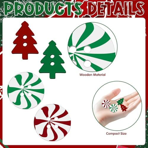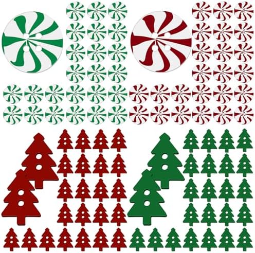 - 【Sizes】This set includes two distinct Christmas-themed designs: classic spiral candy decorative buttons (25mm/0.98in diameter) and festive tree-shaped buttons (1.8cm x 2.6cm). The candy style features four holes for secure attachment, while the tree shape has two holes, offering versatility for both sewing and hanging. Their precise dimensions make them great for detailed craft work and clothing embellishment.