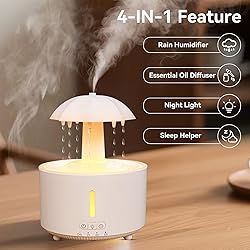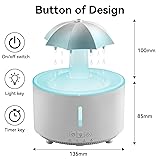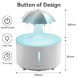 💦【Raindrop Humidifier & Essential Oil Diffuser】Featuring a unique rotating umbrella design, this 3-in-1 device creates a calming visual of dancing water droplets that mimic real rainfall. It combines soothing visuals, soft rain-like sounds, and the benefits of essential oil diffusion to transform any room into a serene, spa-like oasis at home. 🌙【Quiet Bedroom Companion】Equipped with a 300mL large capacity (no frequent refills needed overnight), an 8-hour timer, dry-run protection, and ultra-quiet operation (≤20dB), it allows you to drift off to the gentle sound of rain without noise disruptions . Say goodbye to dry, stuffy air—this compact umbrella humidifier ensures all-night comfort. Suitable for homes, baby nurseries, and ideal for relaxation or bedtime use. 🌈【Colorful Night Light & 360°Rotating】Personalize your space with 7 soft LED light settings that cycle automatically. Ideal for sleep or evening relaxation, the gentle glow adds a cozy vibe to any room. The 360° rotating drip design Transforming your raindrop humidifier into a multifunctional decor piece, it works perfectly as both a rain lamp for sleep and an ambient mood enhancer. 💝【Perfect Gift】With its calming raindrop effect, this rain humidifier sets a serene atmosphere.Makes an excellent present for Christmas, New Year, or any special occasion.Help your loved ones create a soothing oasis in their home—because everyone deserves a little relaxation during the festive hustle and bustle! 📖【Usage Note】When using rotatable umbrella humidifiers, do not fill water above the maximum level, or the device will not spray mist properly. If individual holes stop dripping during use, gently tap the cap to restore water flow.
