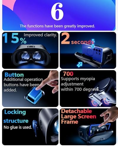 - [ASPHERICAL OPTICAL LENSES AND 1080P HD HIGH QUALITY] VR Headset Utilizing high-quality PMMA aspherical optical lenses with blue light filtering and magnetic radiation protection, the 1080P HD resolution lens is optimized for VR, allowing you to enjoy realistic, immersive VR images. (Note: For a better VR experience, please remove the transparent film before use.)
