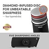 The Innovative Knife Sharpener - Patented Multi-Angle Premium Rolling Knife Sharpener with Extra Replacement Head for Chef's, Fruit, and All Steel Knives (Black)