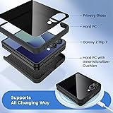 [Compatible Model] Hard PC Slim Case Compatible with Galaxy Z Flip 7 5G(2025 New Released). Support wireless charging without taking off your Samsung Galaxy Z Flip 7 case.Not compatible with Z Flip 7 Fe/Flip 6/Flip 5/Z Flip 4/Z Flip 3. [Full-Body Protection] Four reinforced corners with raised edge, which could protect your Samsung Galaxy Z Flip 7 and Lens against scratches, and drops. Provides supreme protection for your Galaxy Z Flip 7 . [Precise Design] Accurate precision can perfectly fits the position of buttons that is for easy access to all ports and buttons. Raised lip to protect the screen and camera from scratches when you put your Samsung Galaxy Z Flip 7 face down. [Comfortable Grip Experience] Adopt ultra thin cover and back to keep the original shape. Real phone to open mold design is easier to dissipate heat. Lightweight give you no bulky. [Built-in Privacy Screen Protector]: Samsung Galaxy Z Flip 7 Case Polycarbonate front cover includes built-in privacy screen protector, making the screen only visible to people directly in front of the screen. The Z Flip 7 privacy screen will keep all your personal information out of sight of strangers around you, while preventing scratches and cracks on the screen.We provide Lifetime Friendly Customer Service. Please feel free to contact with us if any problem or suggestions.