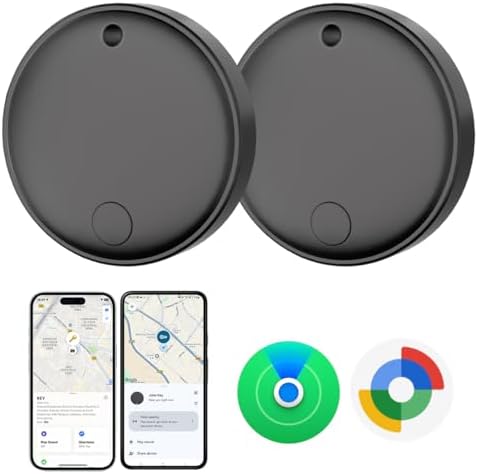 Tracker Tags for Android & iOS, Key Finder Tracking Device Smart Tracker Tag for Luggage, Wallet, Bike, Bags - Both Works with Apple Find My & Google's Find Hub - 2 Pack