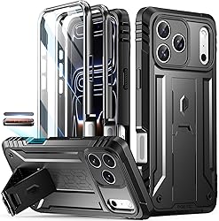 [Camera Control Capture Button] - Built-in camera control capture button, seamlessly integrated with iPhone's button functions [iPhone 17 Pro Max Phone Case with Kickstand] - Built-in Pull out kickstand for hands-free viewing in portrait or landscape mode [iPhone 17 Pro Max Case with Screen Protector] - Front polycarbonate casing with a built-in screen protector adds a layer of protection without affecting screen responsiveness [iPhone 17 Pro Max Cases] - 20FT Military Grade Drop Tested Case protects your iPhone 17 Pro Max from all angles. Shockproof/Drop-proof/Impact resistant/Scratch-proof [Case for iPhone 17 Pro Max] - Included two front frames, one with film, one without film. Enjoy the case with a built-in screen protector or use the front frame without film with your own tempered glass. Both choices should work out perfectly