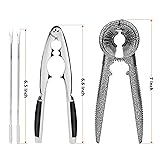 **Ideal for Multiple Uses**: Perfect for cracking nuts like walnuts, pecans, and almonds, as well as seafood such as crab and lobster [NOT FITS FOR BLACK WALNUTS]. The set is ideal for holiday gatherings, family dinners, or any occasion requiring a reliable nutcracker and seafood cracker **Ergonomic Design**: Each tool is ergonomically designed with comfortable, non-slip handles, ensuring a firm grip and ease of use, whether cracking nuts, lobster shells, or seafood **Complete Nutcracker Set**: This versatile set includes a spring-loaded nutcracker, a stainless steel seafood cracker, and two picks for easy nut and seafood shell extraction. Perfect for enjoying a variety of snacks with minimal effort **Durable & High-Quality Construction**: The spring-loaded nutcracker features a robust design, while the stainless steel seafood cracker offers long-lasting durability. The picks are made of premium stainless steel for maximum strength and resistance to rust **Easy to Clean & Maintain**: All pieces are easy to clean with just a rinse under water or by wiping with a cloth. The stainless steel and coated handles make for a hassle-free maintenance experience