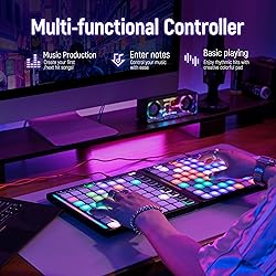 ✔️[Wireless & Portable, Create Without Limits]: This midi keyboard 25 keys supports wireless MIDI connection for fast and stable pairing with computers, tablets, or phones to transmit MIDI data seamlessly. The built-in 3000mAh rechargeable battery offers up to 5 hours of playtime on a single 3-hour charge. Weighing only 2.75 lbs and just 1.98 inches thick, this compact midi controller keyboard is perfect for on-the-go creativity ✔️[Bold Look, Built to Last]: The wireless connection midi keyboard featuring a high-quality matte spray-painted finish, made from high-strength PC+ABS housing that resists drops and pressure better than standard ABS. The premium UV coating on the shell and keys provides a smooth, scratch-resistant, anti-yellowing finish that keeps the midi keyboard controller's shine over time. Built to withstand rigorous use in both studio and stage environments ✔Music Production Made Easy: 64 responsive MIDI pads controller connects to iPhone/iPad via lightning or USB cable for on-the-go music production. TempoPAD Z-1 64-Beat Maker Machine with Easy Mode for Beginners, making it simpler than ever to visualize. With its large and tactile pads, it's fun to learn for a beginner and casual musicians ✔Striking RGB Beat Pad: Synido TempoPAD has bright 8x8 thick soft silicone music pads that are fully customizable to your specific needs for triggering dynamic drumming, effects, and more midi commands. Powerful compatibility with most Light Show Projects for 4 Ambient Modes: Marquee Mode, Rhythm Mode, Note Dance Mode, and Diffusion Mode ✔Play Chords Across 4 Octaves with One Finger: Revolutionize your workflow with fixed chord mode on your MIDI Controller. Quickly lay down chords that span higher and lower notes with one hand. This game-changing feature transposes your chord shapes as you move up and down in keyboard mode. From soft rhythms to bold beats, 4 Velocity Sensitivity for excellent expression freedom