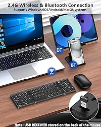▶【Perfect Layout & Quiet Typing】The ultra-thin foldable wireless keyboard is boasts a numeric keypad, and its optimized layout allows you to adapt perfectly to work, while also featuring 12 multimedia keys for quick access to various functions, enhancing productivity and convenience. Designed with scissor switch keys for a quieter typing experience, paired with a noise-reduced mouse, improved focused during work sessions without disruptions. ▶【Pocket-Size & Hard Travel Case】The mini-size wireless foldable keyboard and mouse combo is designed to save space, making it perfect for limited desktop areas. It comes with a stylish hard case and an adjustable phone holder, serving as the ideal companion for business activities and travel adventures, creating all kinds of whimsical ideas anytime, anywhere! Hard carry case size is: 25*14*4.5cm (9.84*5.51*1.77inches) ▶【2.4G Wireless & Bluetooth Keyboard Mouse】Featuring both Bluetooth and wireless connectivity, this foldable wireless keyboard mouse combo effortlessly connects with up to 3 devices (BT1+BT2+2.4G). Keyboard mouse wireless Bluetooth maintains a stable connection within a 33ft (10m) range, allowing seamless switching between devices. Widely compatible with Windows, Android, iOS, and Mac systems, works smoothly on laptops, desktops, tablets, Android devices, and more. ▶【Rechargeable & Power Saving】The foldable Bluetooth wireless keyboard and mouse uses a Type-C charging interface and has a built-in rechargeable battery that provides up to 90 hours of continuous typing after 2-3 hours charge. One full charge is enough for a short business trip or vacation. The keyboard automatically enters sleep mode after 10 minutes of inactivity, while the mouse does so after 30 minutes, both helping to save power. Simply press any key or button to wake them up instantly. ▶【12 Months Warranty Service】Portable foldable wireless keyboard and mouse undergo rigorous quality testing and come with a 12-month warranty, along with 24-hour quick response technical support. Even after the Amazon return period, if you encounter any problems during use, please feel free to reach out to us, we're here to assist you.