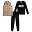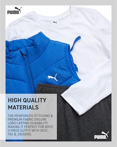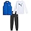 PUMA Boys Pants Set - 3 Piece Athletic Poly Woven Zipper Vest Jersey Long Sleeve Tee and Fleece Jogger Pants (8-16)