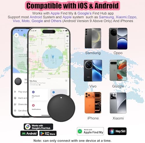 - 🔊Dual-System Compatibility for Wide Use: Seamlessly works with both iOS and Android devices. It supports Apple's well-known Find My app (exclusive to iOS) and Google's Find Hub (for Android), eliminating the need to repurchase a tracker when switching phone systems.(Important Note: This tracker cannot connect to two devices simultaneously; it can only be paired with one device at a time.)