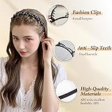 - 4 PCS Headband with Clips with 8 Clips Each, Bangs Hairstyle Hairpin Headband, Multi Layer Toothed Braid Tool, Hair Accessories Gift for Women and Girls(Brown*2 + Black*2, One Size)