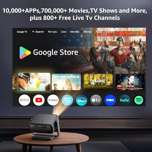 - [True All-in-One Streaming Access] Officially licensed streaming platform! Don't settle for projectors that only support Netflix or a handful of apps. This portable projector delivers instant access to 10,000+ apps and 800+ free live channels, including exclusives like Netflix,Disney+, Hulu, Prime Video, YouTube and more, no extra stick needed.Features user-friendly system that's fast and smooth, making it easy to watch movies, TV shows, and games—just log in, stream, and enjoy your home movie nights.