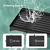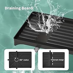 - Features:All parts are disassemblable and dishwasher-friendly, making it easy to clean and sanitize.Our dish rack is made with bending legs and thickened tubes to ensure good stability and weight-bearing.The sides are equipped with an utensil holder and a cutting board holder, making it practical to dry all your silverware.Our 2-tier vertical design takes up little horizontal space, making it perfect for small kitchen counters.Upgraded Innovative Rapid Drainage System.The drains can extend and also rotate 360°, solving the common issue of water pooling ,so that the kitchen countertop has been kept ventilated dry.