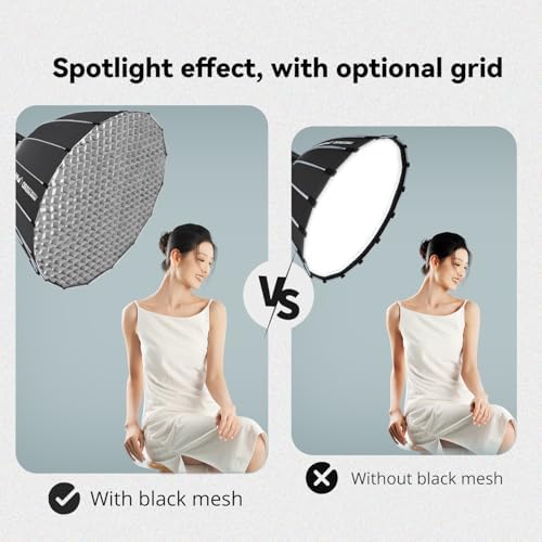 - 【With Honeycomb Grid & Dual Diffusers】- This bowens mount softbox includes internal and external double diffusers and grids.Combine diffusers for ultra-soft, wraparound light. Add the 45° honeycomb grid to focus illumination, dramatically reduce spill, and sculpt defined, punchy lighting effects – perfect for highlighting facial contours and creating depth