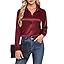 HOTOUCH Satin Shirts for Women Silk Button Down V Neck Dressy Casual Blouse Loose Long Sleeve Office Work Tunic Tops