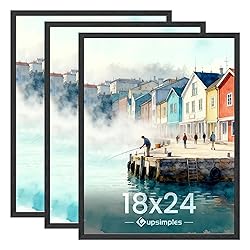 upsimples 18x24 Frames 3 Pack, Black Wood Grain MDF Large Picture Frame with Vertical & Horizontal Wall Hanging, Fits Posters, Art Prints & Gallery Wall
