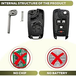 - Tip: 1. Please check your original key fob looks the same as the one in our product image before purchasing. 2. Only plastic key fob shell and uncut keyblade included, No electronics inside ( No remote / No battery / No transponder chip ). 3. The new blank keyblade needs to be cut by a hardware store or locksmith.(Or you can swap the old key blade insert into this new key shell.) 4. We recommend that you refer to the installation video on YouTube for instructions on how to move internals to this new key shell. 5. Black polka dot stickers can be used to fill the circular screw slots on the back of the key shell. 6. If only the key fob case button outer cover pad is damaged, there is no need to spend over 300 dollars to replace the entire remote key fob, thereby saving money. Product Feature: Material: Plastic + Zinc Alloy 4 Buttons: Lock, Unlock, Trunk, Horn Easy Installation: No Reprogramming Required Fits for FCC ID: OHT01060512 / V2T01060512 Fits for Part Numbers: 13500222 13500227, 13501913 13504200, 13504203 13504258, 20873623 5913596, 5913598 Colour: Black Size: 6.4 x 3.5 x 1.8 cm / 2.50 x 1.38 x 0.71 inches Package Includes: 2pcs 4 Button Key Fob Shell Replacement for Chevy/ GMC/Buick 2010-2019 2pcs Metal Keychians 2pcs Screws 2pcs Black Round Stickers Dots 1pc 3 In 1 Small Phillips Screwdriver 1pc Small Flat Head Screwdriver Compatible Models (4 Button): Chevy Cruze 2011, Chevy Cruze 2012, Chevy Cruze 2013 Chevy Cruze 2014, Chevy Cruze 2015, Chevy Cruze 2016 Chevy Camaro 2010, Chevy Camaro 2011, Chevy Camaro 2012 Chevy Camaro 2013, Chevy Camaro 2014, Chevy Camaro 2015 Chevy Camaro 2016, Chevy Camaro 2017, Chevy Camaro 2018, Chevy Camaro 2019 Chevy Equinox 2010, Chevy Equinox 2011, Chevy Equinox 2012 Chevy Equinox 2013, Chevy Equinox 2014, Chevy Equinox 2015 Chevy Equinox 2016, Chevy Equinox 2017, Chevy Equinox 2018, Chevy Equinox 2019 Chevy Impala 2014, Chevy Impala 2015, Chevy Impala 2016 Chevy Impala 2017, Chevy Impala 2018, Chevy Impala 2019 Chevy Malibu 2014, Chevy Malibu 20115, Chevy Malibu 2016 Chevy Sonic 2012, Chevy Sonic 2013, Chevy Sonic 2014 Chevy Sonic 2015, Chevy Sonic 2016, Chevy Sonic 2017 Buick Regal 2011, Buick Regal 2012 Buick Regal 2013, Buick Regal 2014 Buick Regal 2015, Buick Regal 2016, Buick Regal 2017 Buick Lacrosse 2010, Buick Lacrosse 2011 Buick Lacrosse 2012, Buick Lacrosse 2013 Buick Lacrosse 2014, Buick Lacrosse 2015, Buick Lacrosse 2016 Buick Verano 2012, Buick Verano 2013, Buick Verano 2014 Buick Verano 2015, Buick Verano 2016, Buick Verano 2017 Buick Encore 2014, Buick Encore 2015, Buick Encore 2016 Buick Encore 2017, Buick Encore 2018, Buick Encore 2019 Buick Encore 2020, Buick Encore 2021 Buick Allure 2010, Buick Allure 2011, Buick Allure 2012 GMC Terrain 2010, GMC Terrain 2011, GMC Terrain 2012 GMC Terrain 2013, GMC Terrain 2014, GMC Terrain 2015 GMC Terrain 2016, GMC Terrain 2017, GMC Terrain 2018 GMC Terrain 2019, GMC Terrain 2020, GMC Terrain 2021