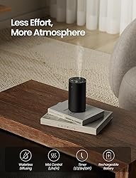 - No water needed – Enjoy pure essential oil diffusion with zero mess and no residue. Modern, minimalist design – Sleek, stylish, and perfect for any home, office, or car. Ultra-portable – Cordless, rechargeable, and compact enough to take anywhere. Smart features – Choose from 3 mist cycles and 3 timers (1/3/6H) for a customized aroma experience.