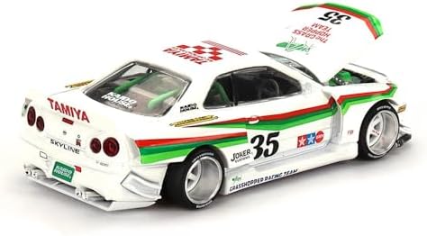 1:64 Diecast Model Car Compatible with Nissan Skyline GT-R (R34) Tamiya X Kaido House “The Grasshopper” V1 White Limited Edition by Kaido House x Mini GT KHMG167