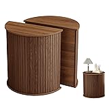 - Bring style and versatility into your home with the LEVNARY 2-Piece Round End Table Set. Each half-moon side table can be used individually or seamlessly joined to create a striking full round cylinder design. Featuring a removable tabletop lid with hidden storage, these tables keep your living area clutter-free by discreetly holding remotes, magazines, or everyday items. The fluted grooved panels add texture and elegance, making this set a standout accent piece in any living room, bedroom, or entryway. Designed for flexibility, the half-round shape fits snugly against sofas or walls, while the full cylinder option creates a bold centerpiece. Built from durable materials with a stable structure, these modern side tables are compact yet functional. Choose from Black, Walnut, or Natural finishes, and select between 2-Pack (forms 1 Round) or 4-Pack (forms 2 Rounds) to suit your space and needs.