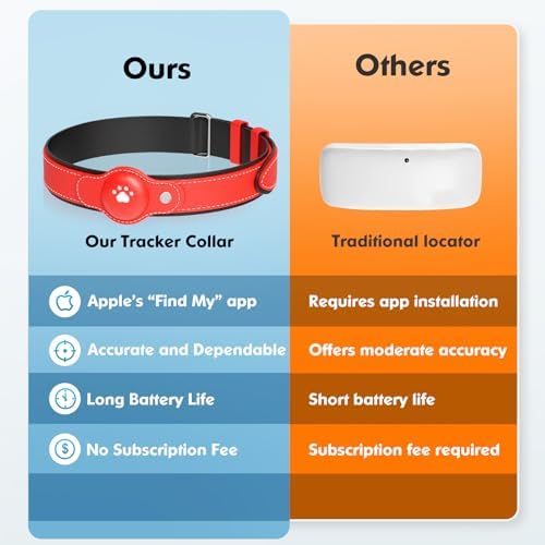 - ⭕Anti-Loss Feature:When playing outdoors, if your pet gets lost, this GPS Dog Tracker Collar helps locate them. Find your furry friends using the FindMy app, which integrates with your iOS device maps.