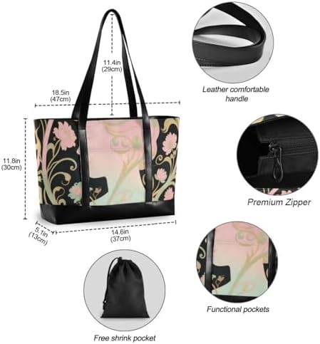 KLL Beauty Woman Silhouette Flower Pink simple laptop bag 14 with zipper work tote bags for women for women work with tablet maletin ejecutivo para mujer