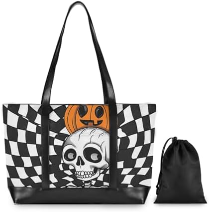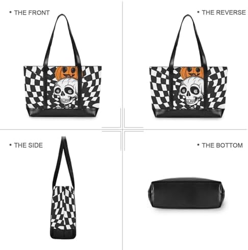KLL Black-and-white Checkered Cartoon Skeleton essentials work bag with laptop compartment with zipper work bag with laptop for women work with diaper maletín para laptop mujer
