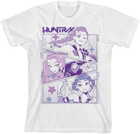 Kpop Demon Hunters Panel Art Huntrix Youth White Crew Neck Short Sleeve T-Shirt