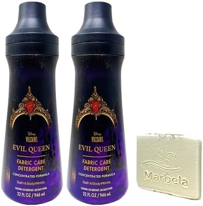Bath & Body Works Disney Villains Collection Evil Queen - 2 Pack Of Fabric Care Detergent (32 Fl Oz/946 mL each) with a Natural Oats Sample Soap. ( Marbela Soap May Vary )
