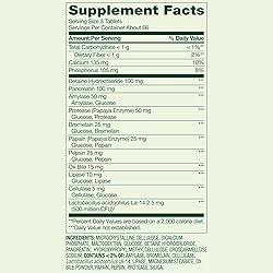 Comprehensive Digestive Support* – Multi-enzyme blend plus probiotic acidophilus helps promote healthy digestion and nutrient absorption. Targets Bloating & Gas* – Formulated to aid relief from occasional digestive discomfort, including indigestion and gas. Probiotic + Enzyme Blend* – Features betaine hydrochloride, pancreatin, amylase, protease, bromelain, papain, pepsin, ox bile, lipase, cellulase, and Lactobacillus acidophilus La-14. Clean Formula – No artificial colors, flavors, sweeteners, preservatives, egg, lactose, milk derivatives, peanuts, fish, shellfish, talc, or trans fat; <5mg sodium per serving. Value Size – 200 tablets per bottle; convenient 3-tablet daily serving provides over 2 months of digestive health support.