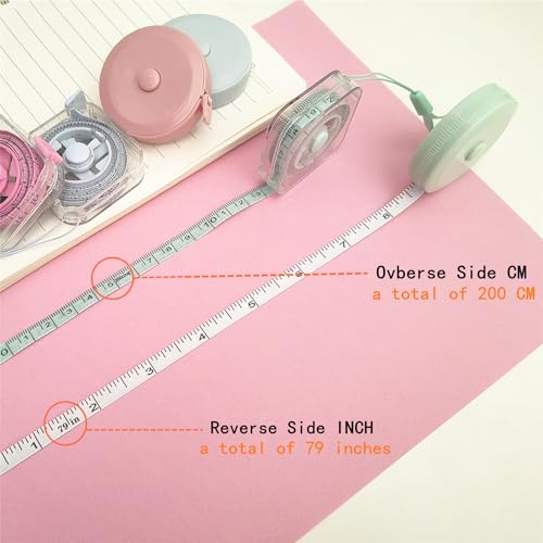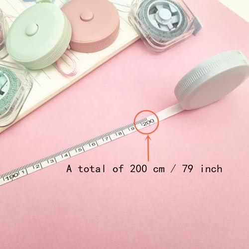 - Size:The total measurement of the soft retractable tape measure is 79 inches/200 cm. The tape measure is two different scale in inches and centimeters on the front and back respectively
