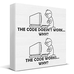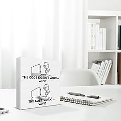Funny Programmer Gifts for Men, gifts for techies Computer Programmers Coders, the Code Doesn't Work Why Wood Sign Decoration for Home Office Cubicle Desk Shelf Table 5 X 5 Inch
