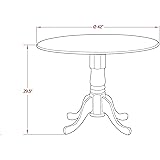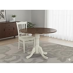 DIMENSIONS: 42-inch round tabletop with two 9-inch drop leaves for flexible sizing, supported by a 29.5-inch height pedestal base VERSATILE DESIGN: Classic pedestal dining table features a rich walnut-finished top contrasting beautifully with the white-painted base SPACE-SAVING: Drop leaf functionality allows the table to be compact when needed while expanding to accommodate more dining space CONSTRUCTION: Crafted from solid hardwood for lasting durability, featuring a sturdy turned pedestal base with decorative feet STYLE: Farmhouse-inspired design perfectly suits both kitchen nooks and formal dining spaces with its timeless round silhouette