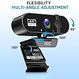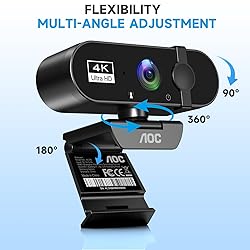 AOC 4k Webcam for PC with Microphone, Computer Camera with Noise Cancellation, Privacy Cover, 99° FOV, Plug & Play USB Webcam for Streaming, Conferencing, Zoom, Skype, Facetime, Laptop, PC, Skype