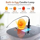 【High Capacity & Auto Egg Incubator】Our chicken egg incubator designed for efficient hatching, this unit holds 12 or 24 eggs (depending on size). The automatic egg turner achieves a significantly higher hatch rate than manual methods, ideal for serious hobbyists. This incubators for hatching eggs is versatile and perfect for hatching eggs of various poultry species, such as, chicken, duck, goose, pigeon, quail, and bird eggs. 【Auto Turning & Smart Stop】The egg hatching incubator automatically turns eggs at intervals you choose 60, 120, or 180 minutes—promoting even heating and healthy embryo growth to simulate the natural brooding process. This chicken incubator stops 3 days before hatching to prevent over-turning. Tips: Remember to take out the egg tray on the 19th day. 【Precise Digital Temperature & Humidity Control】Our incubator for chicken eggs equipped with a high-precision digital sensor to monitor and maintain the ideal temperature range(±0.1℃). Also, the chicken incubator features an easy-to-read LED screen to display current temp, humidity, and hatching days. This duck egg incubator includes a low-temperature alarm and automatic fan for optimal air circulation and greatly improves hatching success. 【360° Visual & External Water Refill】The highly transparent PC cover of the egg incubator automatic turner allows for full observation of the entire hatching process, allowing you to identify and remove any non-fertilized eggs or dead embryos. External water injection port means you can easily add water without opening the lid, minimizing temperature fluctuations. 【Lifetime Warranty & Tips】Ensure eggs are fertilized and place them into the incubator within 24 hours of purchase for optimal results. We are dedicated to delivering superior products and have lifetime warranty. If you have any questions or concerns about our egg incubators for hatching eggs, please contact us and we'll respond within 24 hours.